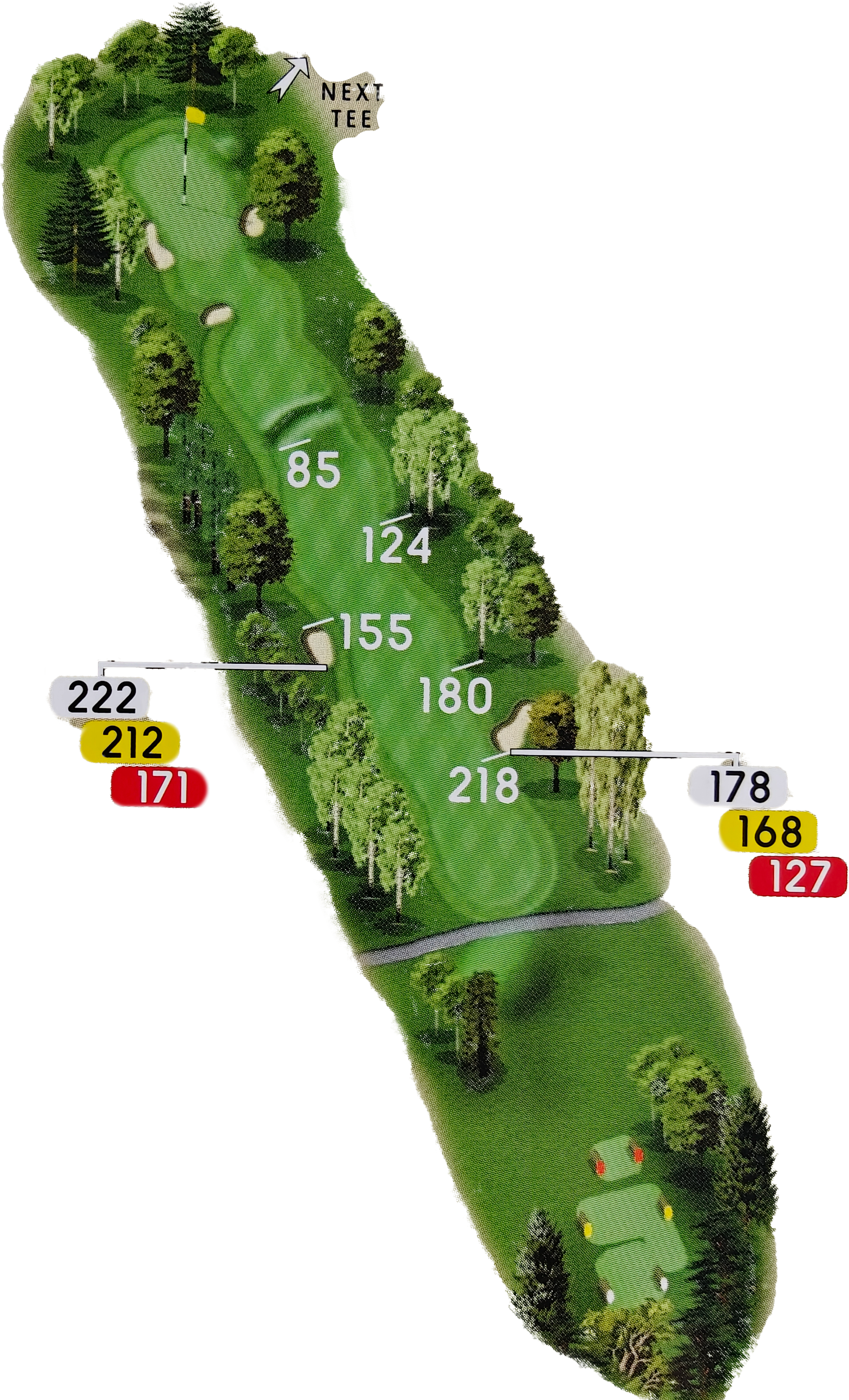 Approaching the green you need to carry the bunker in the middle of the fairway but avoid the two front greenside traps. The reshaped bunker in the centre is further back from the green than it looks, leaving a tricky length of bunker shot should you land in it but it does present a perfect landing zone if you land one just past the sand and roll up to the green.