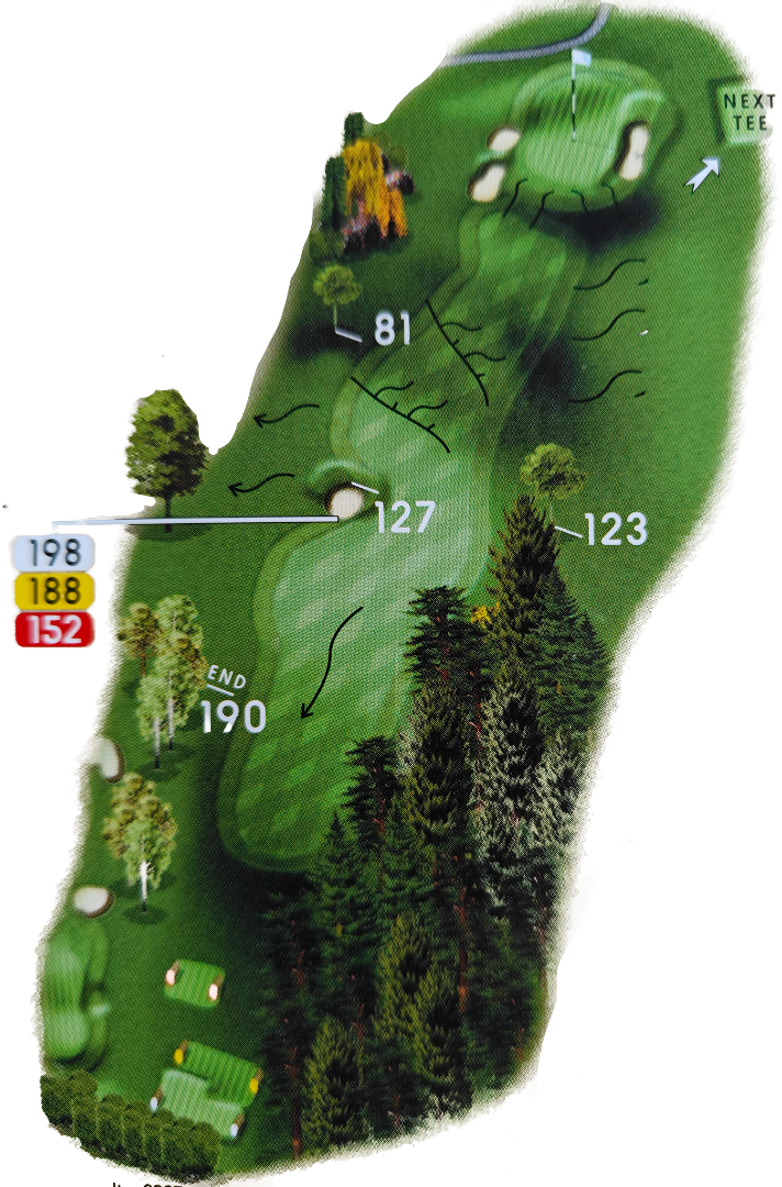 A tricky hole requires an accurate drive with trouble left and right. The trees on the right are tight on the driving line. Left of the fairway leaves you bunker bound or an awkward stance across the slope. For slightly longer hitter things open up a little at the top of the slope. The green sits up over a valley requiring an accurate approach shot. Slightly short and you will be facing a tricky pitch up a really steep slope.
