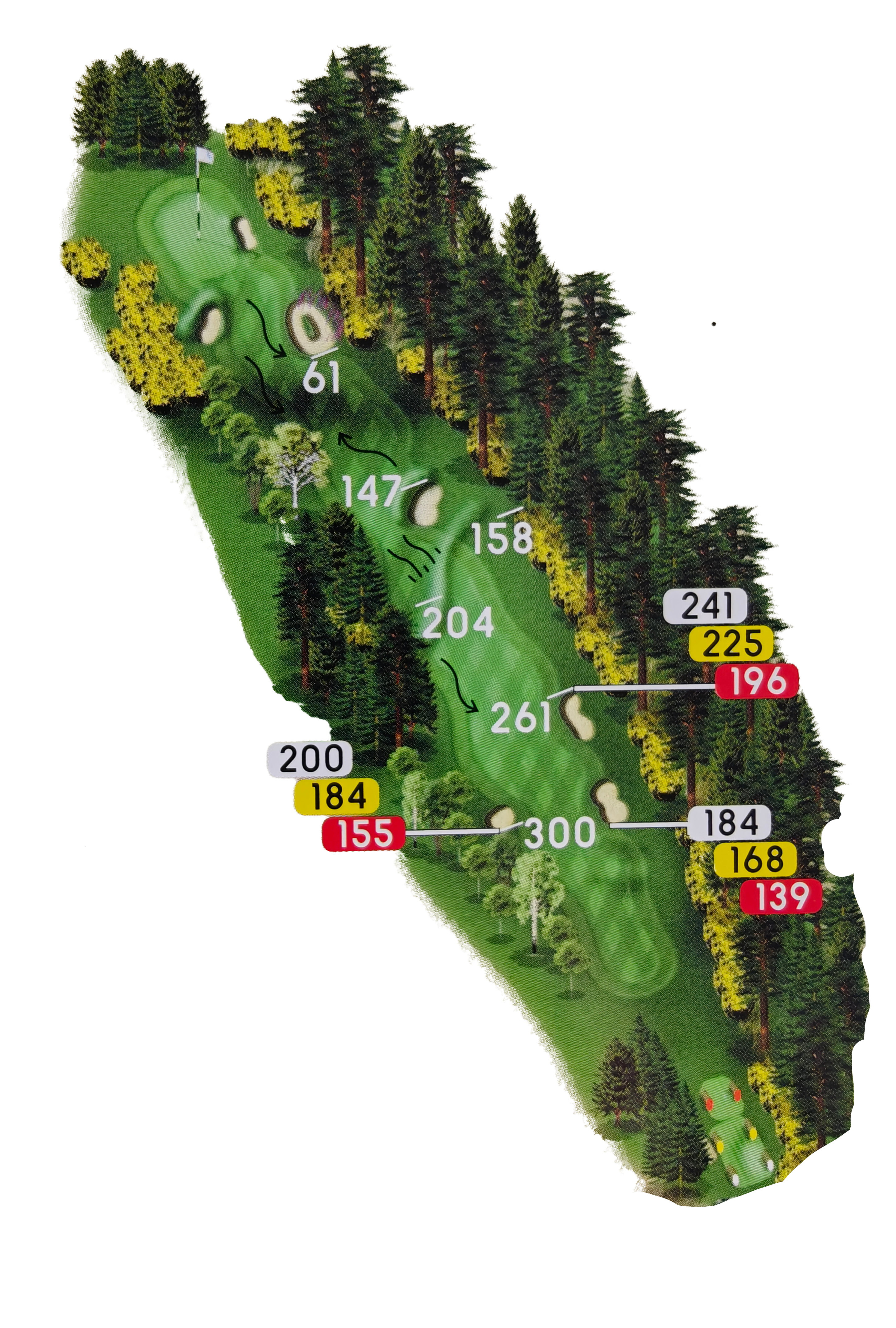 Mere mortals will want to hit a steady tee shot with a fairway wood or long iron between bunkers on the left and right edges of the fairway, leaving a fairway wood or iron with their 2nd to a flat section of fairway over the ridge. A wedge to a large green will see you reach in regulation. Top tip: if you tend to go right off the tee you might not like this hole! Stay well away from out of bounds tight on the right side.