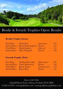 Following the Brodie & Forsyth 36 Hole Open we want to say thank you to all those who took part and congratulate the winners of the various sections!