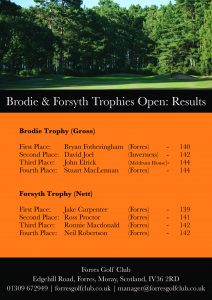 Following the Brodie & Forsyth Trophies 36 Hole Open we want to say thank you to all those who took part and congratulate the winners of the various sections!