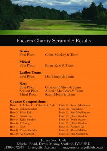 Following Flickers Charity Texas Scramble Competition we want to say thank you to all those who took part and congratulate the winners of the various sections!