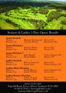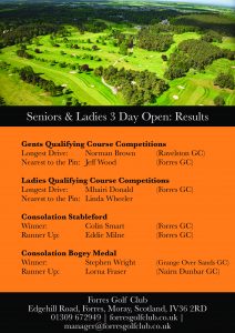 Following the conclusion of the finals at our Seniors and Ladies 3 Day Open we wanted to say thank you to all those who took part in the competition and congratulate the winners of the various sections!