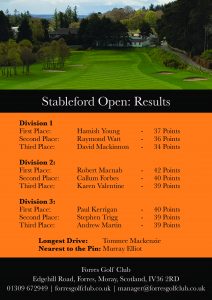 Following the Stableford Open Competition on Saturday we wanted to say thank you to all those who took part in the competition and congratulate the winners of the various sections!